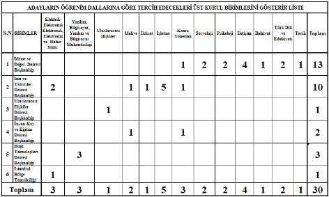 b-Öğrenim dalları itibariyle görev yapmak üzere tercih etmeleri gereken Üst Kurul birimleri aşağıdaki tabloda belirtilmiştir.